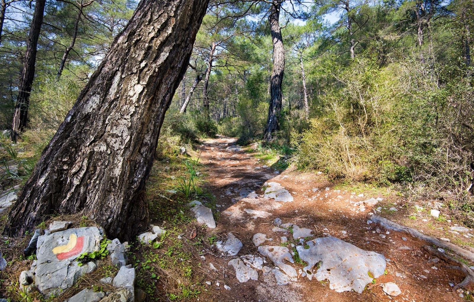 Afkule'ye giden patika yolda yön bulabilmeniz için işaretli taşlar.